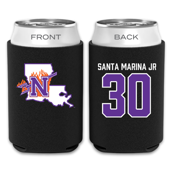 Northwestern State University Football Black Can Cooler - #30 Troy Santa Marina Jr