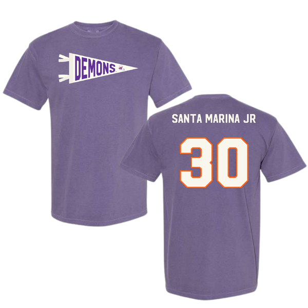 Northwestern State University Football Purple Pennant Comfort Colors Tee - #30 Troy Santa Marina Jr