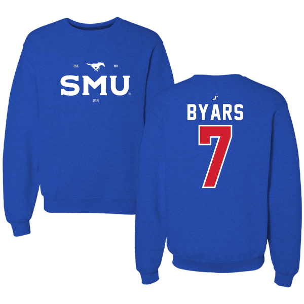 Southern Methodist University Soccer Blue General Crewneck - #7 Truth Byars