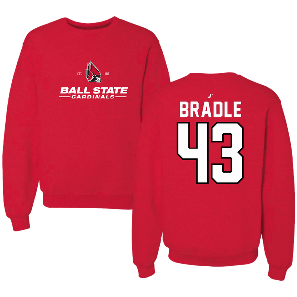 Ball State University Baseball Red General Crewneck - #43 Ty Bradle