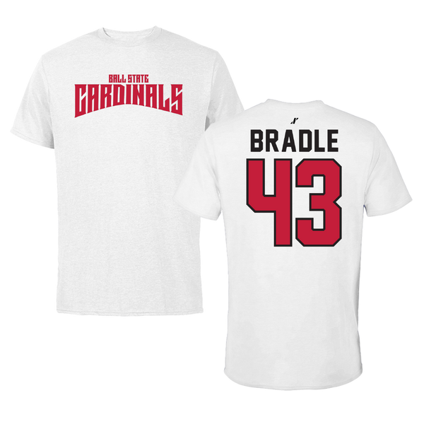 Ball State University Baseball White Classic Tee - #43 Ty Bradle