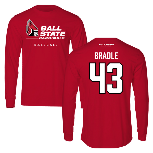 Ball State University Baseball Red Long Sleeve - #43 Ty Bradle