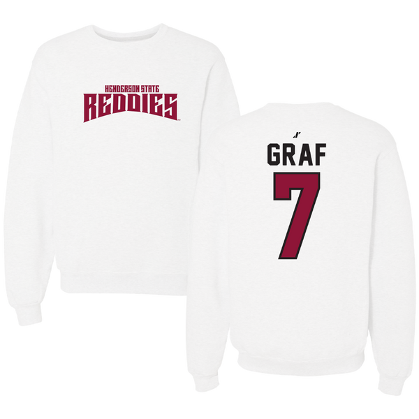 Henderson State University Baseball White Classic Crewneck - #7 Ty Graf