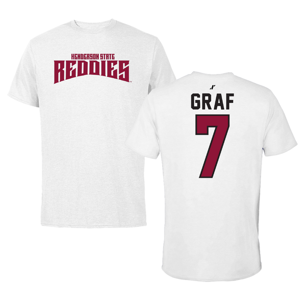 Henderson State University Baseball White Classic Tee - #7 Ty Graf