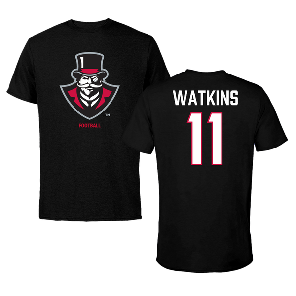 Austin Peay State University Football Black Tee - #11 Ty Watkins