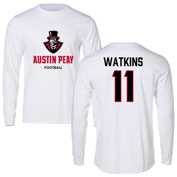 Austin Peay State University Football White Long Sleeve - #11 Ty Watkins