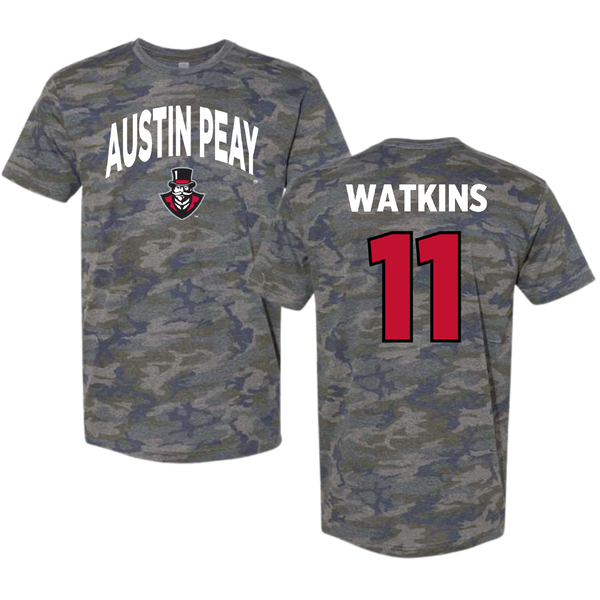 Austin Peay State University Football Vintage Camo Tee - #11 Ty Watkins