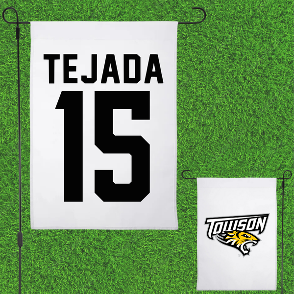 Towson University Basketball White Garden Flag - #15 Tyler Tejada