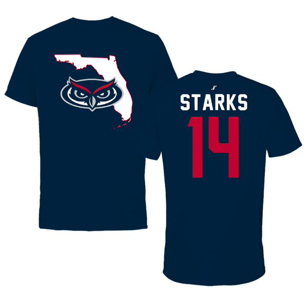 Florida Atlantic University Football Navy State Tee - #14 Tyriq Starks