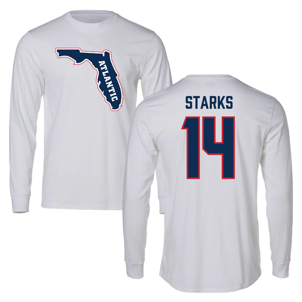 Florida Atlantic University Football White Long Sleeve - #14 Tyriq Starks