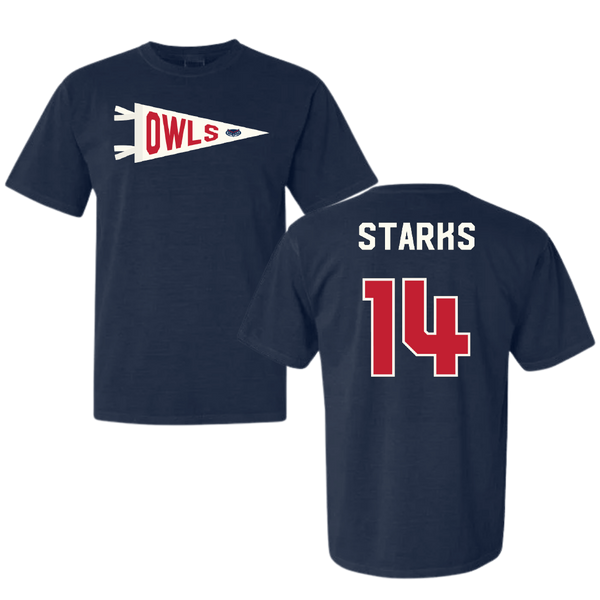 Florida Atlantic University Football Navy Pennant Comfort Colors Tee - #14 Tyriq Starks