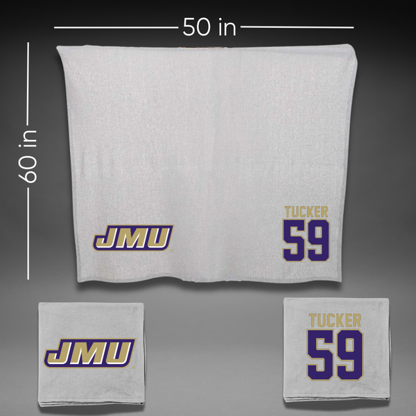 James Madison University Football Gray Blanket - #59 Tyrique Tucker