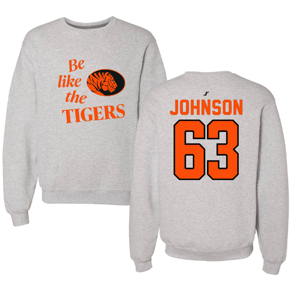 East Central University Football Light Gray Be Like Us Crewneck - #63 Tyson Johnson