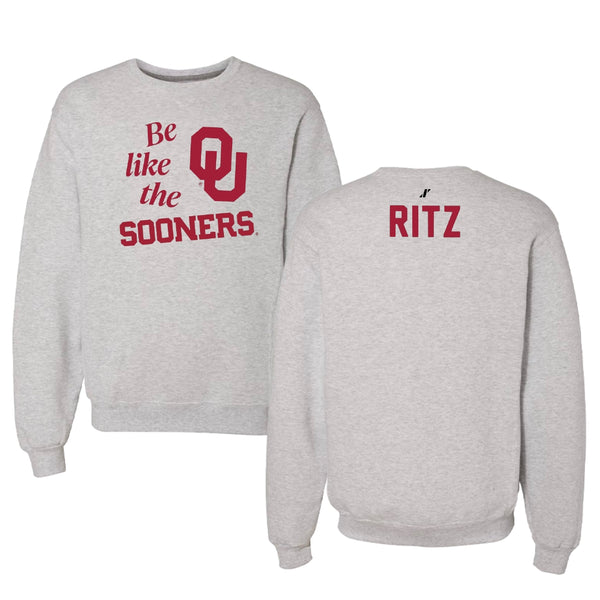 University of Oklahoma TF and XC Light Gray Be Like Us Crewneck - Tyson Ritz