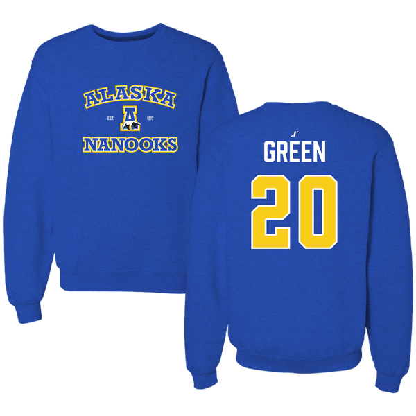 University of Alaska Fairbanks Basketball (W) Blue General Crewneck - #20 Pearle Green