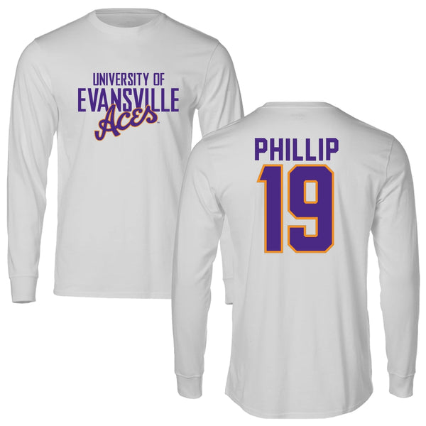 University of Evansville Soccer Light Gray Long Sleeve - #19 Kai Phillip