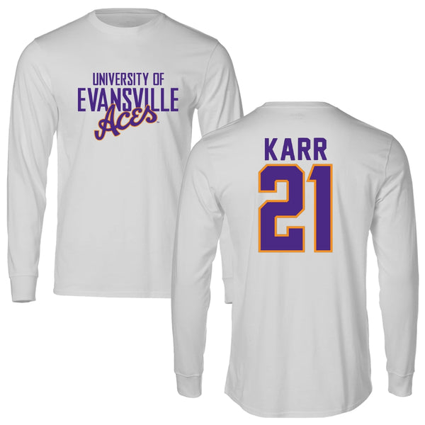 University of Evansville Soccer Light Gray Long Sleeve - #21 Emily Karr