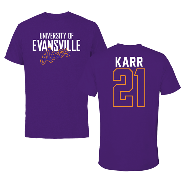 University of Evansville Soccer Purple Tee - #21 Emily Karr