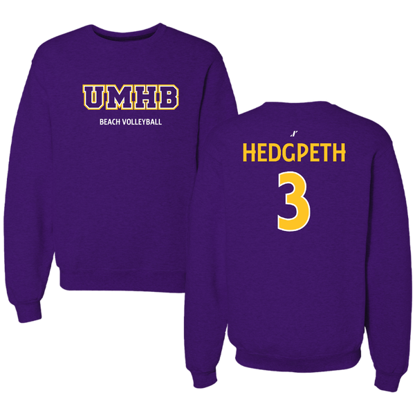 University of Mary Hardin-Baylor Beach Volleyball Purple UMHB Crewneck - #3 Avery Hedgpeth