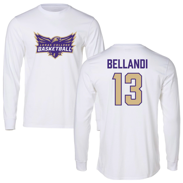 Loras College Basketball (M) White Basketball Long Sleeve - #13 Valentino Bellandi
