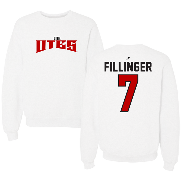 University of Utah Football White Classic Crewneck - #7 Van Fillinger
