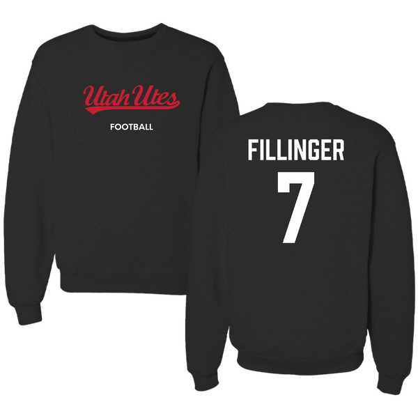 University of Utah Football Black Crewneck - #7 Van Fillinger