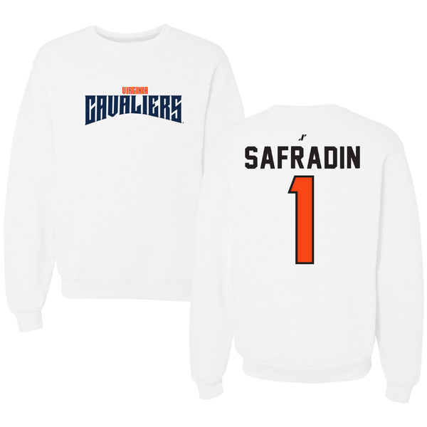 University of Virginia Soccer White Classic Crewneck - #1 Victoria Safradin