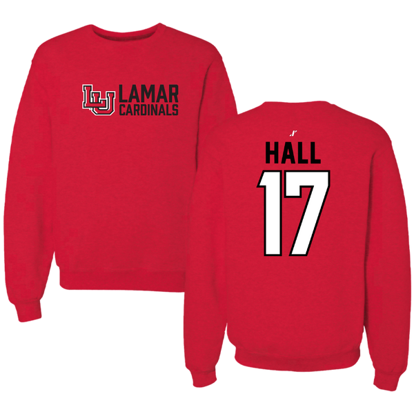 Lamar University Football Red Touchdown Crewneck - #17 Vontravious Hall