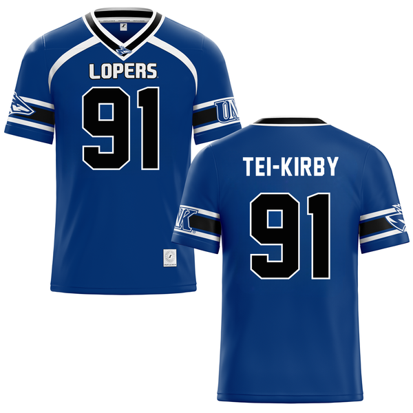 University of Nebraska at Kearney Blue Football Jersey - #91 Wayne Tei-Kirby