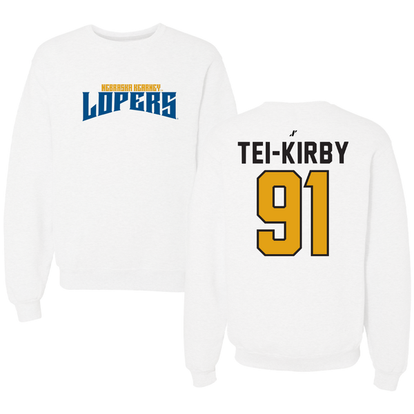 University of Nebraska at Kearney Football White Classic Crewneck - #91 Wayne Tei-Kirby