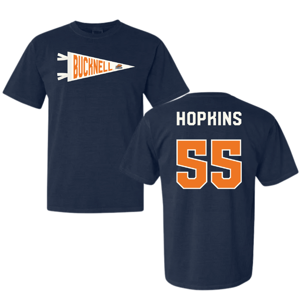 Bucknell University Lacrosse Navy Pennant Comfort Colors Tee - #55 Will Hopkins
