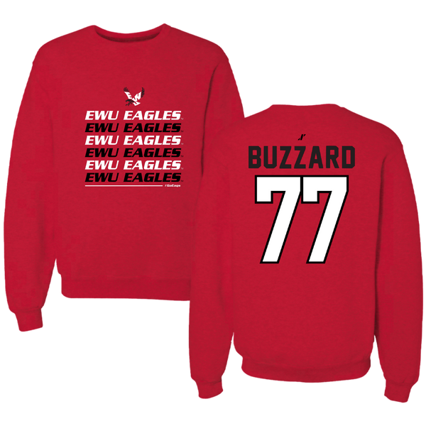Eastern Washington University Football Red General Crewneck - #77 William Buzzard