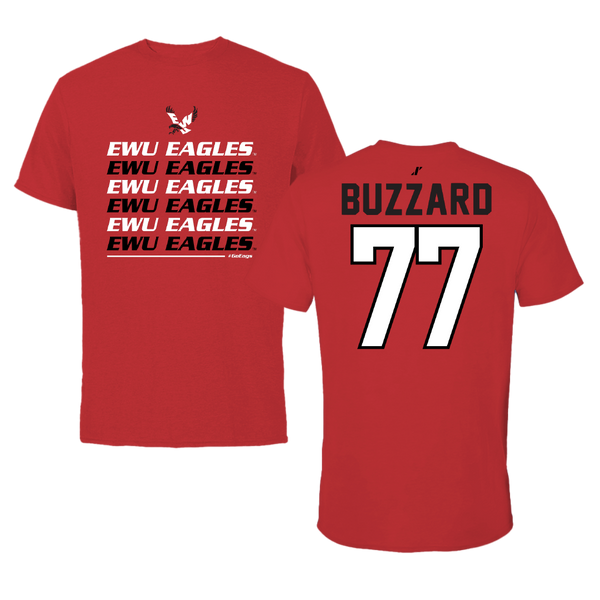 Eastern Washington University Football Red Tee - #77 William Buzzard