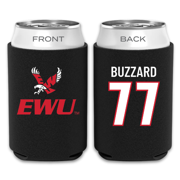 Eastern Washington University Football Black Can Cooler - #77 William Buzzard