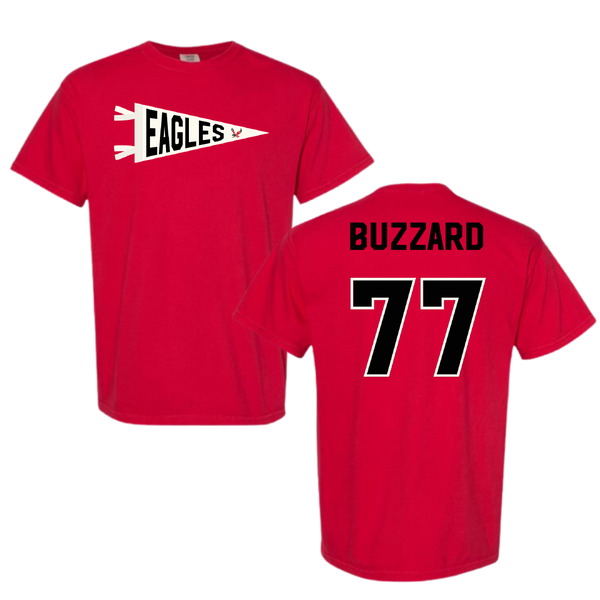 Eastern Washington University Football Red Pennant Comfort Colors Tee - #77 William Buzzard