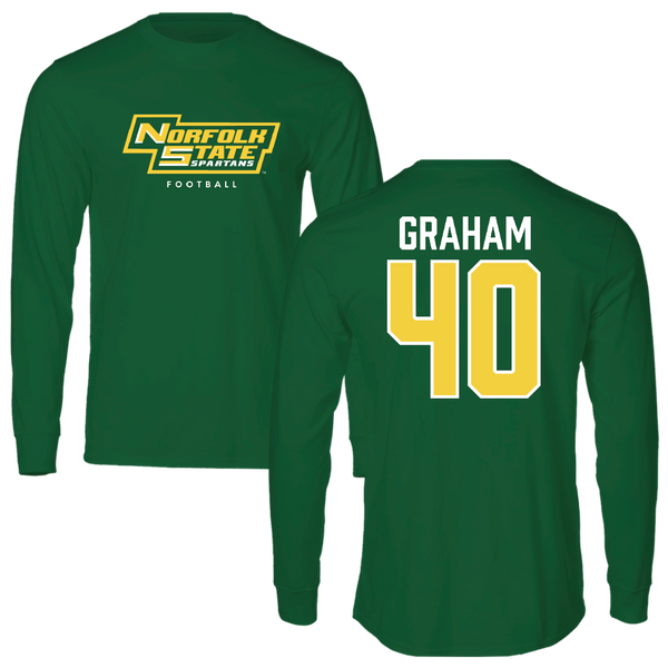 Norfolk State University Football Kelly Green Long Sleeve - #40 Xavier Graham