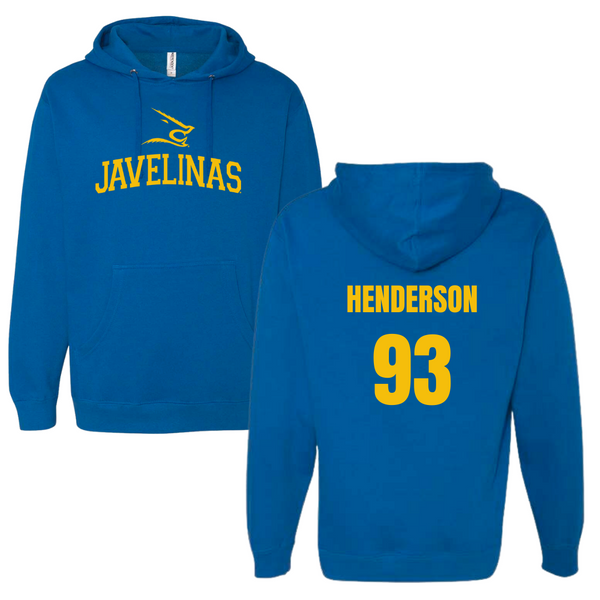 Texas A&M University-Kingsville Football Blue Hoodie - #93 Xavier Henderson