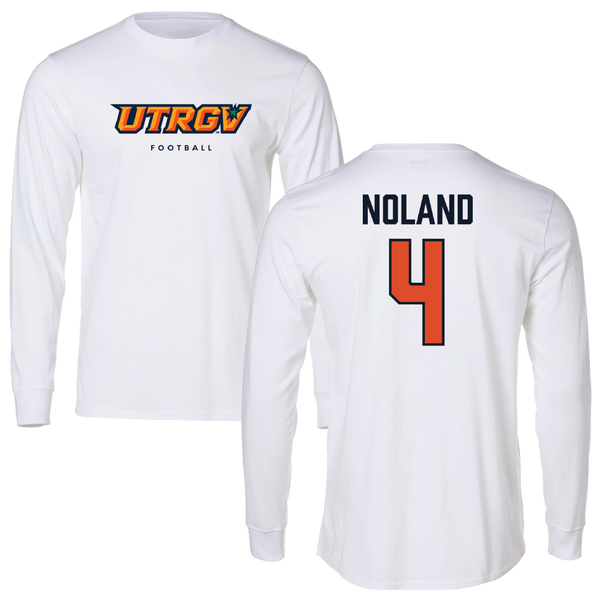 The University of Texas Rio Grande Valley Football White Long Sleeve - #4 Xayvion Noland