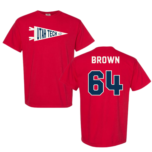 Utah Tech University Football Red Pennant Comfort Colors Tee - #64 Zach Brown