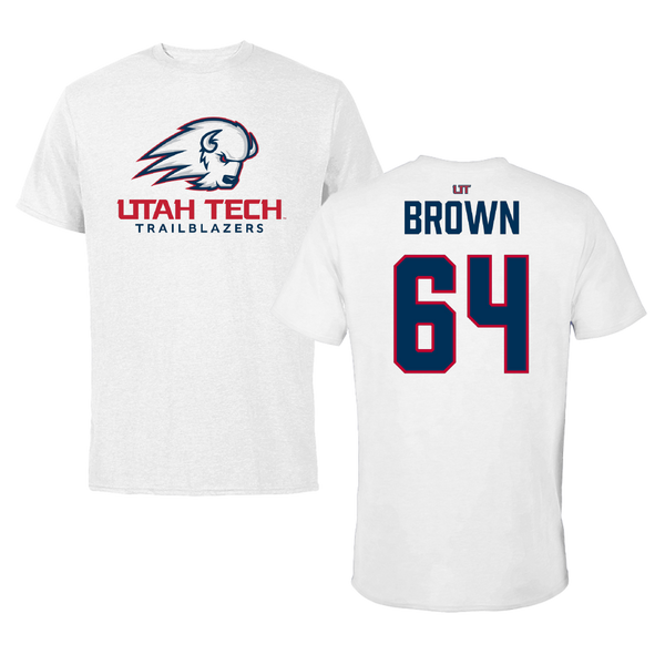 Utah Tech University Football White Performance Tee - #64 Zach Brown