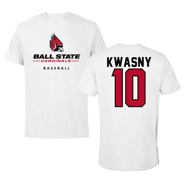 Ball State University Baseball White Tee - #10 Zach Kwasny