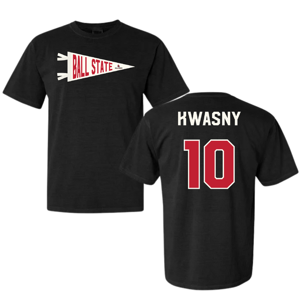 Ball State University Baseball Black Pennant Comfort Colors Tee - #10 Zach Kwasny
