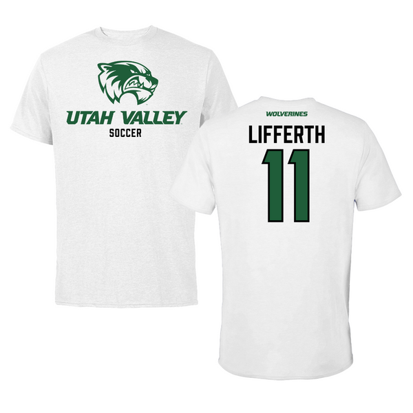 Utah Valley University Soccer White Tee - #11 Zach Lifferth