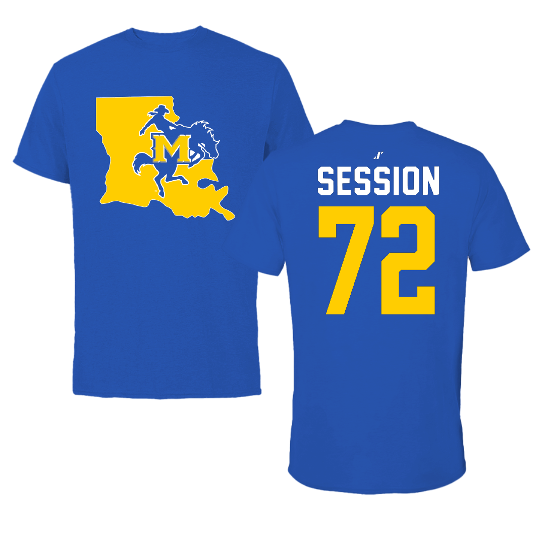 Decrease quantity for McNeese State University Football Blue State Performance Tee - #72 Zach Session