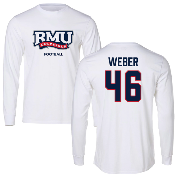 Robert Morris University Football White Long Sleeve - #46 Zach Weber