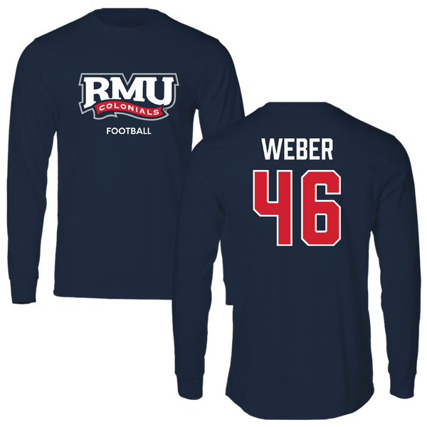 Robert Morris University Football Navy RMU Long Sleeve - #46 Zach Weber