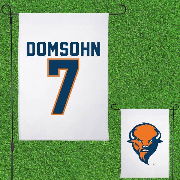 Bucknell University Soccer White Garden Flag - #7 Zane Domsohn