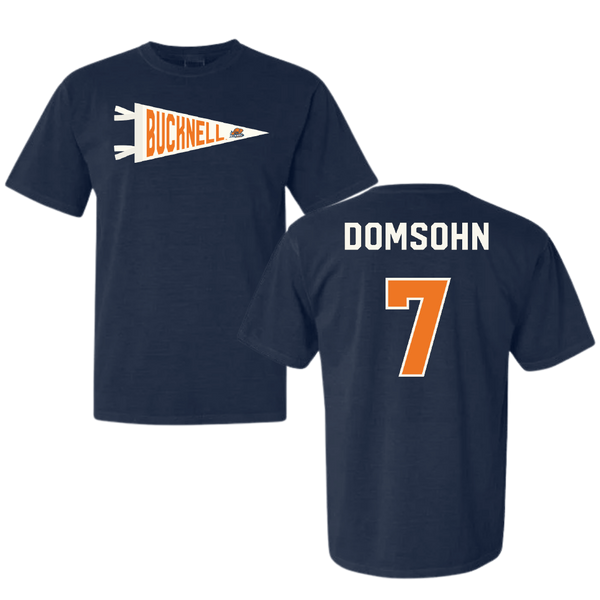 Bucknell University Soccer Navy Pennant Comfort Colors Tee - #7 Zane Domsohn