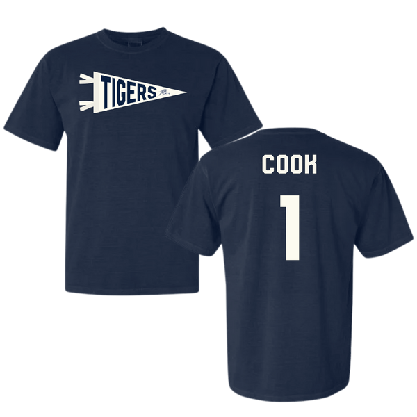 Jackson State University Basketball Navy Pennant Comfort Colors Tee - #1 Zeke Cook