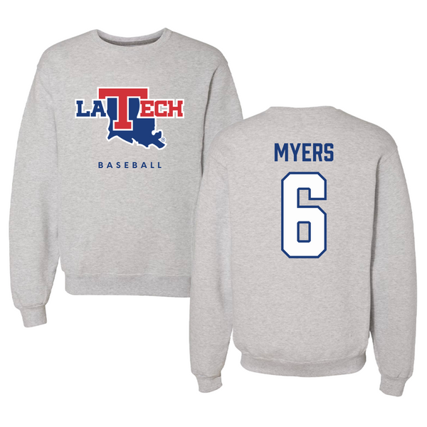 Louisiana Tech University Baseball Gray Crewneck - #6 Adarius Myers